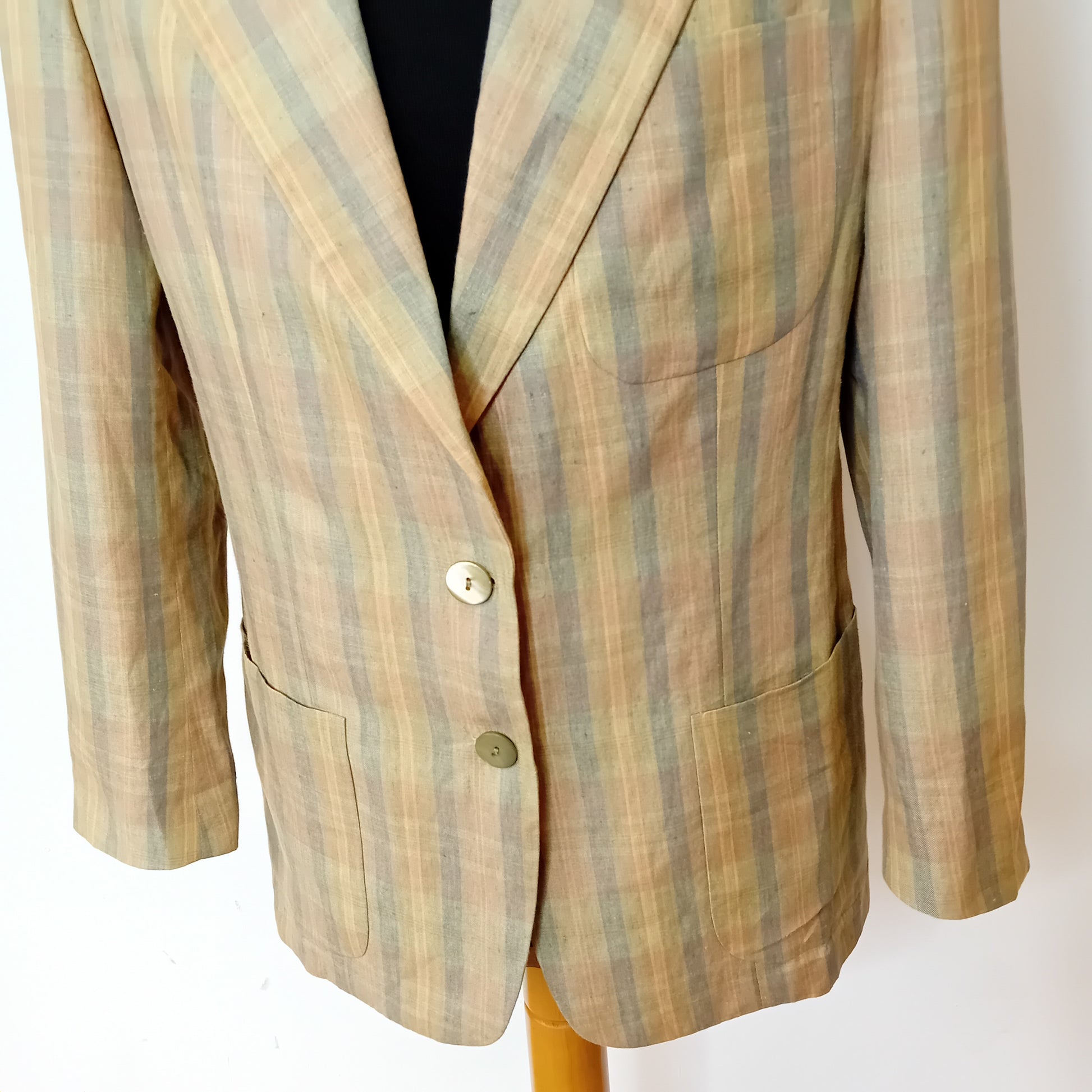 Blazer BALLANTYNE in principe di Galles tenue, spalline rinforzate, revers classico, tre tasche a toppa, chiusura a due bottoni senza spacchi. Amato, ottimamente conservato. Privo di etichetta di composizione e taglia.