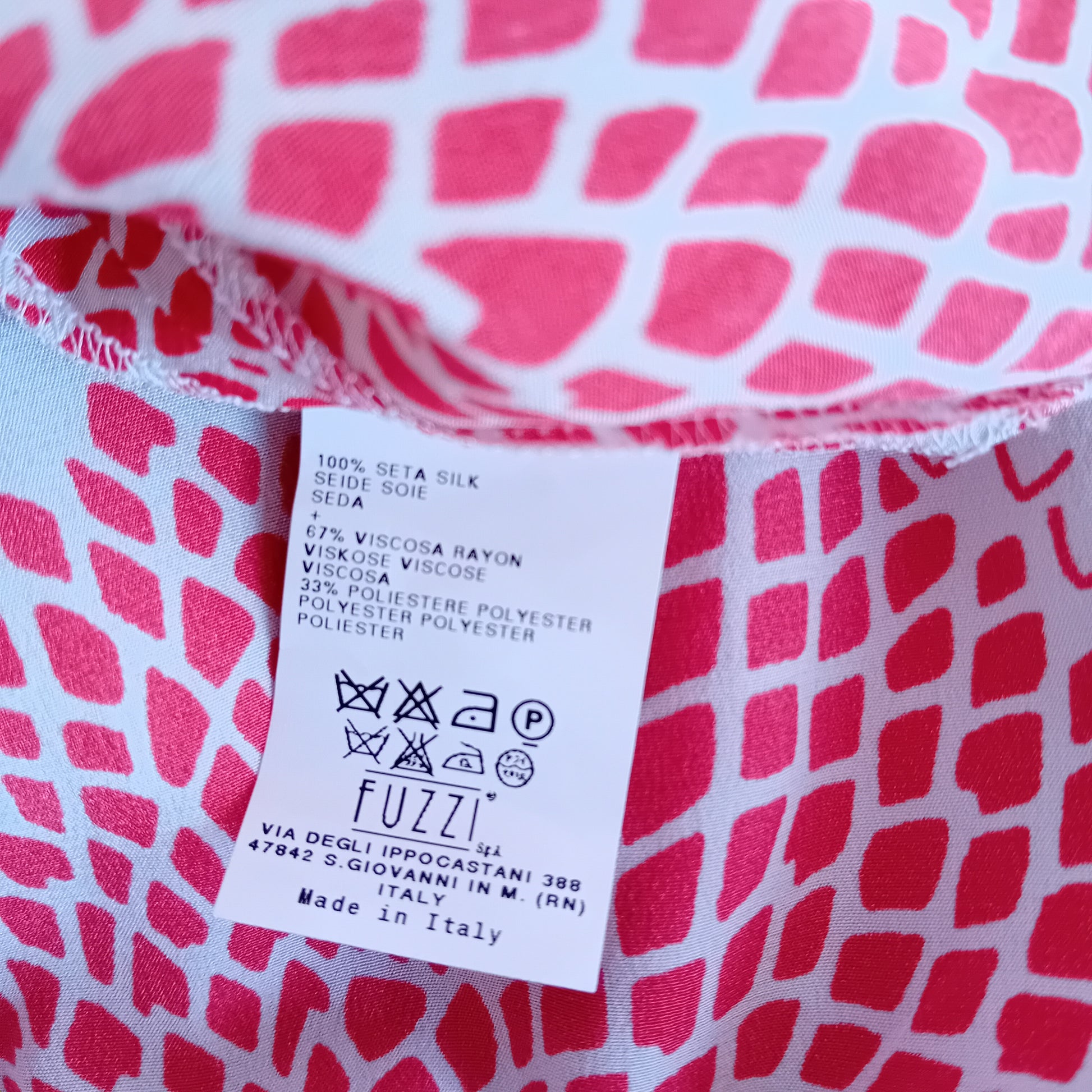 Composizione: 100% seta + 67% viscosa 33% poliestere