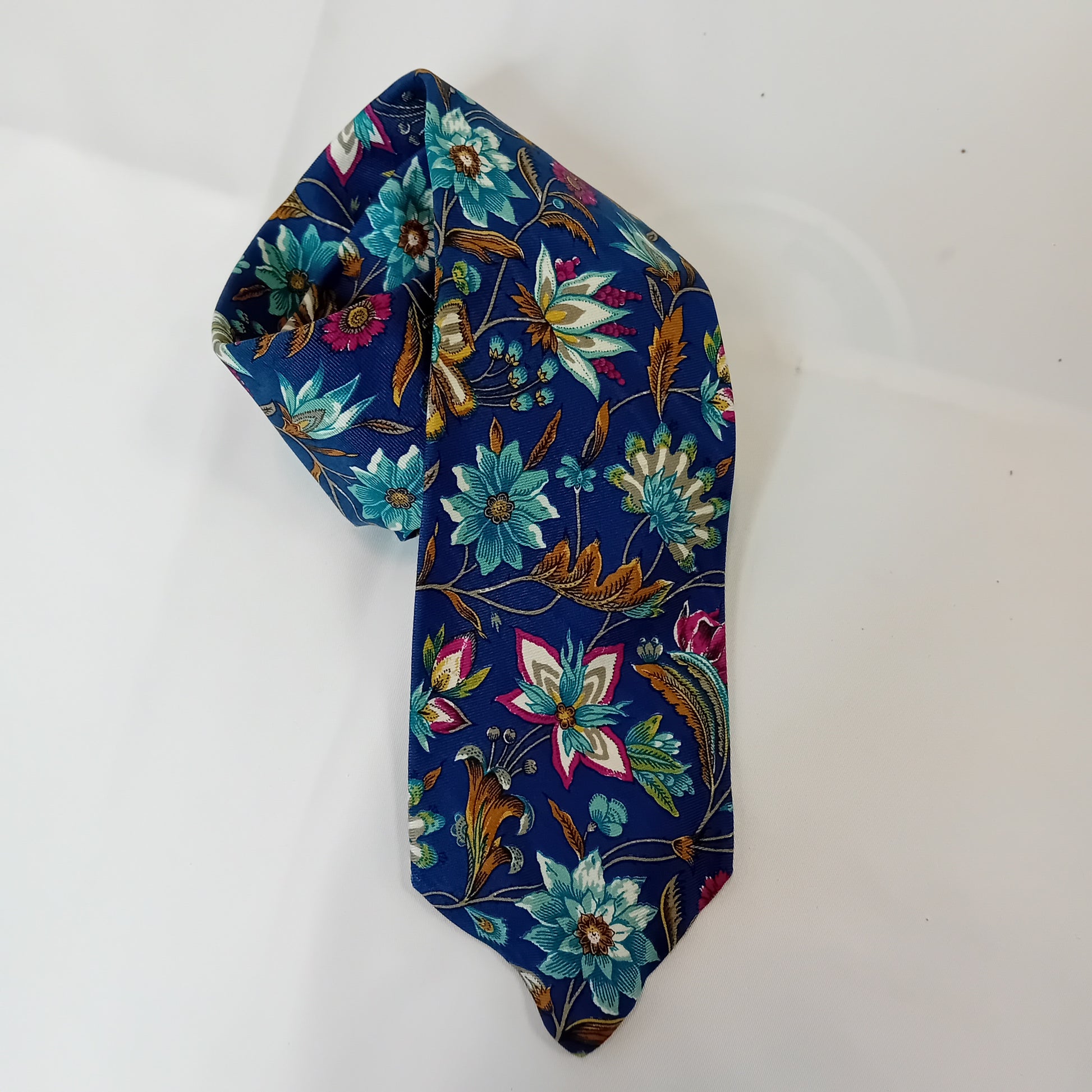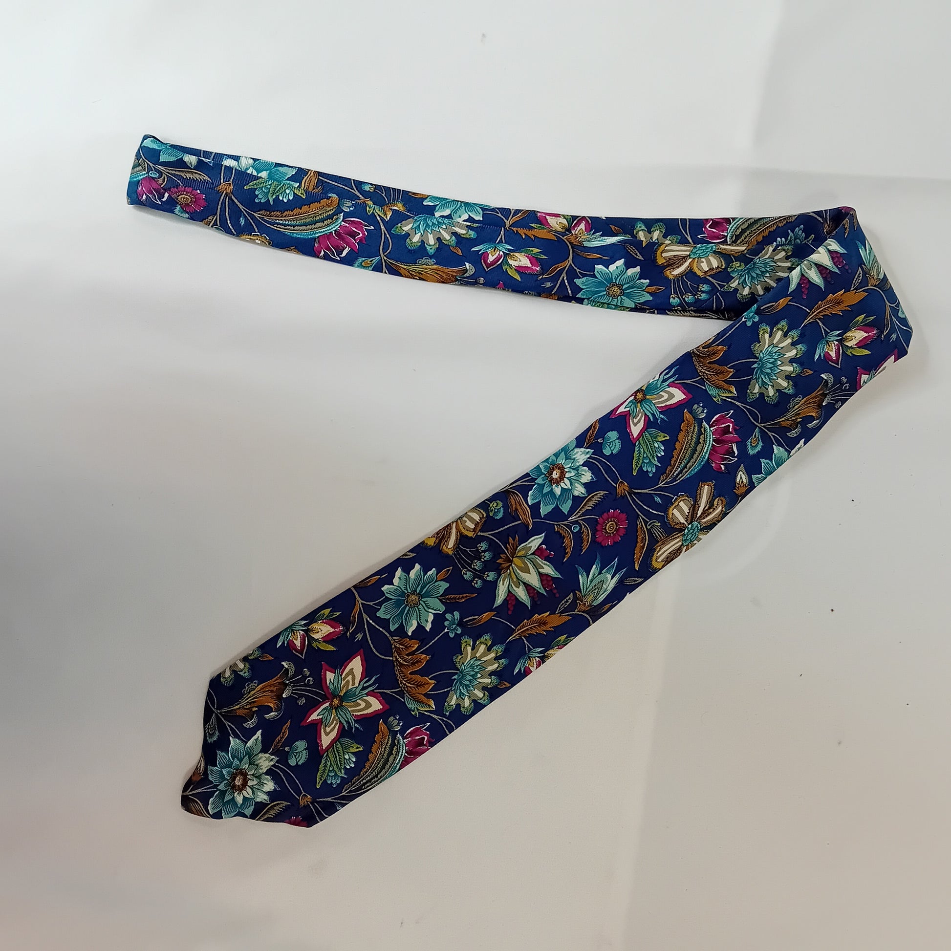 Cravatta in seta FENDI Roma a stampa floreale su base blu. Amata, ottimamente conservata.