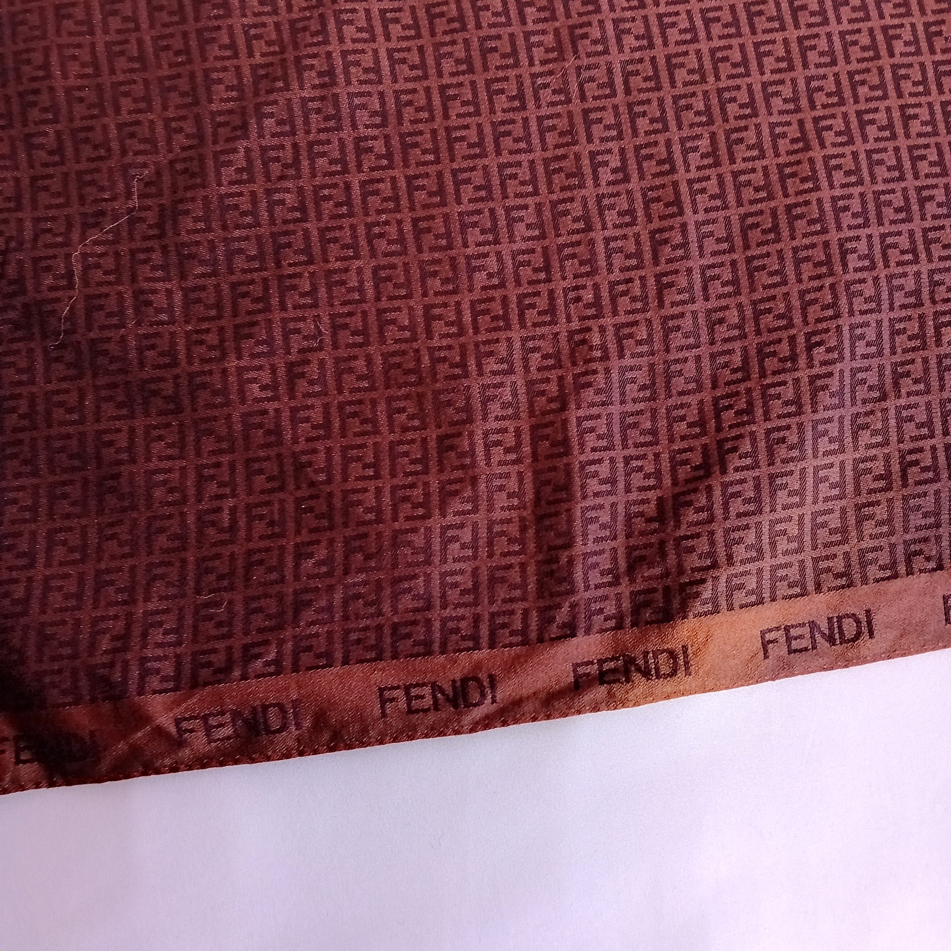 Foulard FENDI color marrone con iconico motivo micro FF all-over. Ottimamente conservato, come nuovo. Leggermente pendente l'etichetta della composizione.