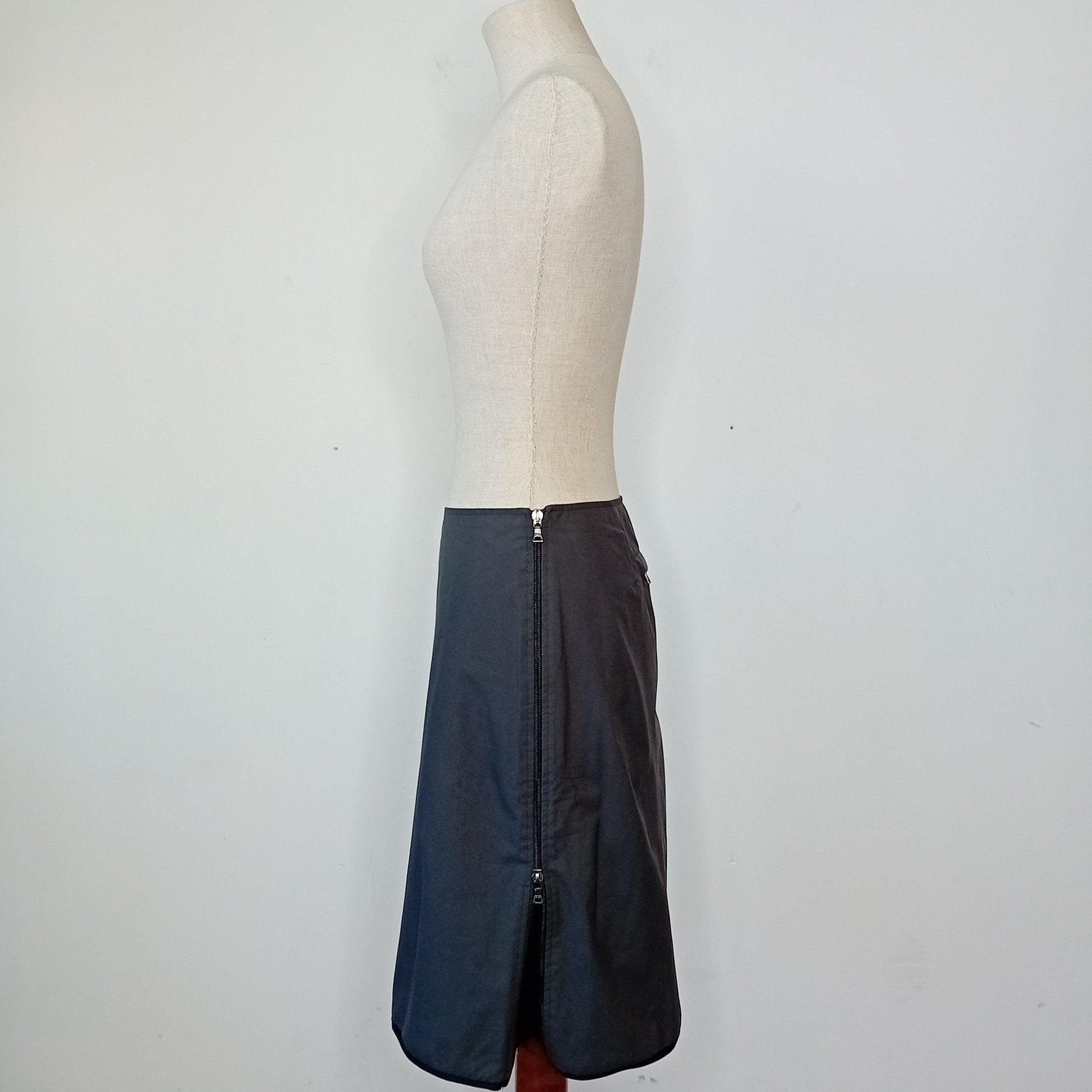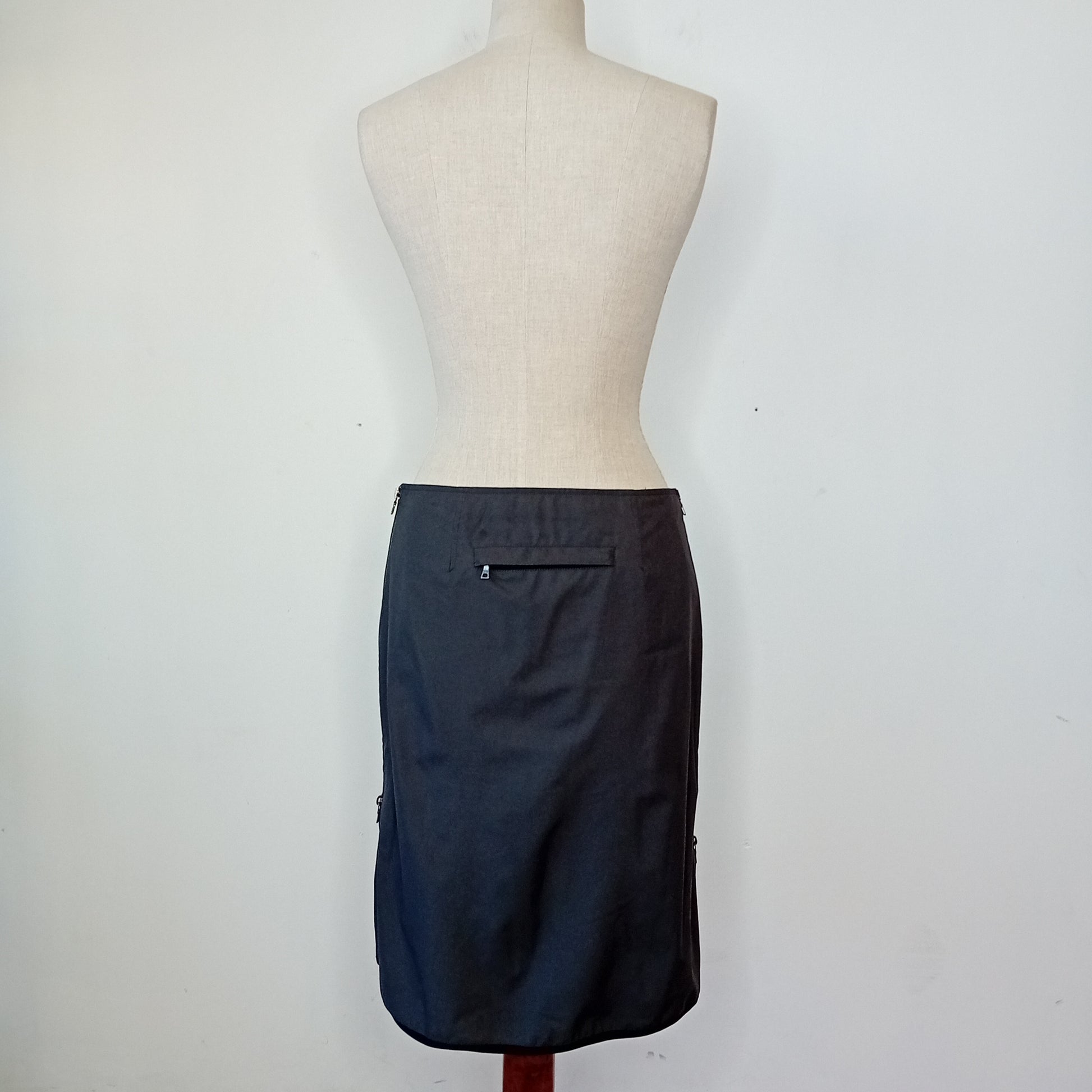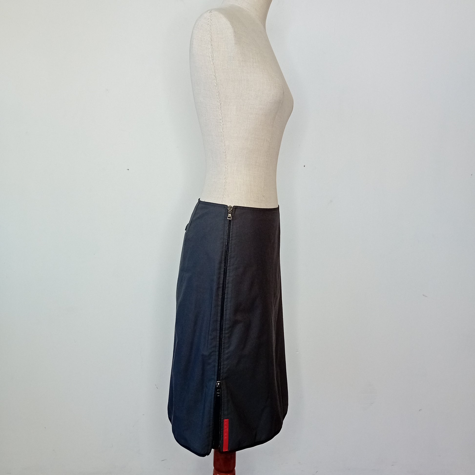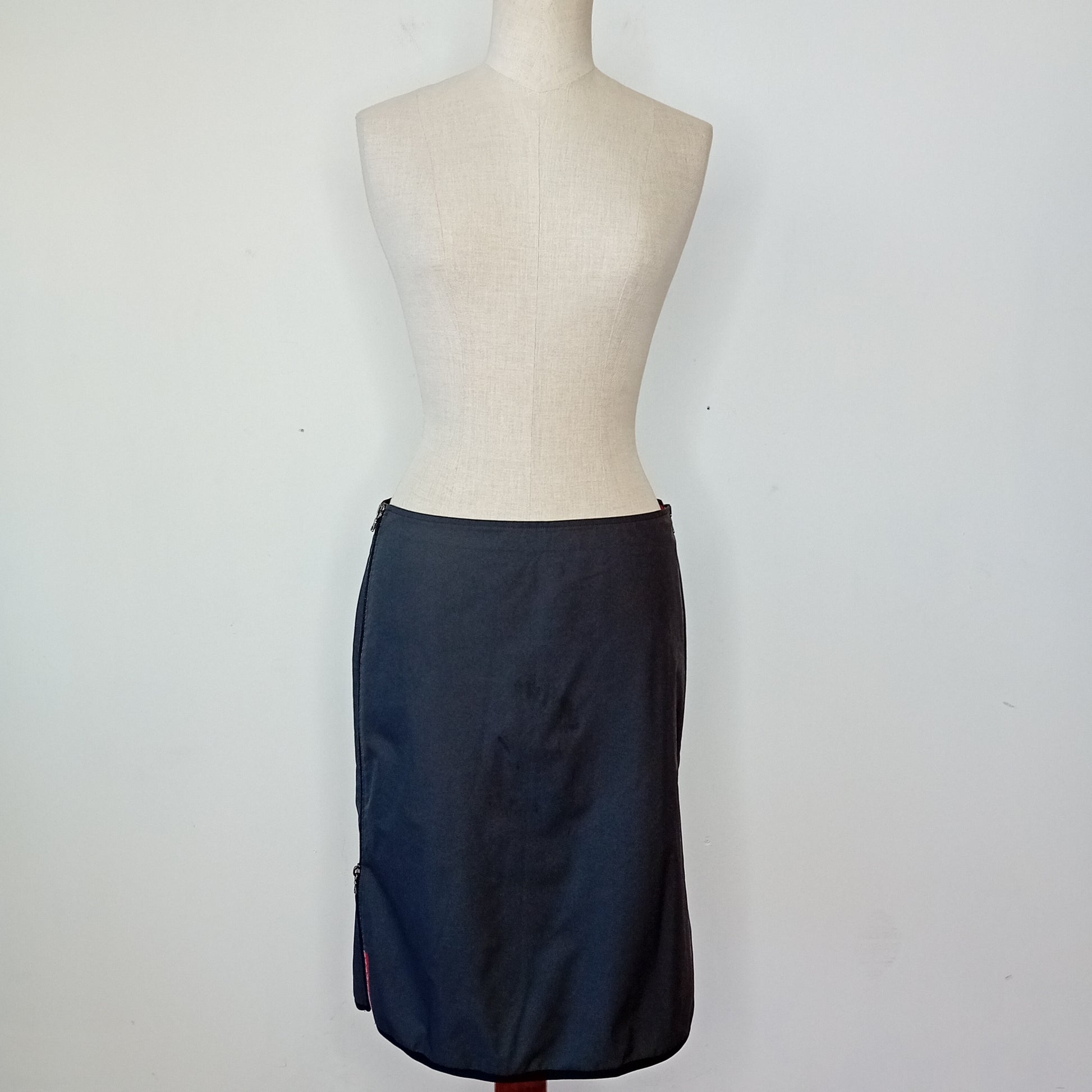 Gonna vintage PRADA, a tubino, con doppia zip laterale su entrambi i lati, tasca posteriore centro schiena, lunghezza al ginocchio, interamente foderata in rete. Made in Italy. Amata, esternamente perfetta, internamente il tessuto sembra rovinato. Ben conservata.