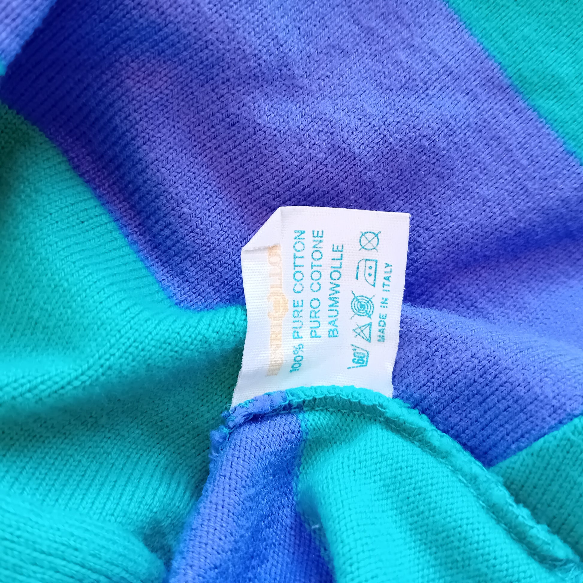 Polo vintage HENRI LLOYD, classico a righe con colletto bianco a contrasto, maniche lunghe, vestibilità regular. Amata, presenta segni di utilizzo sparsi. Ben conservata.