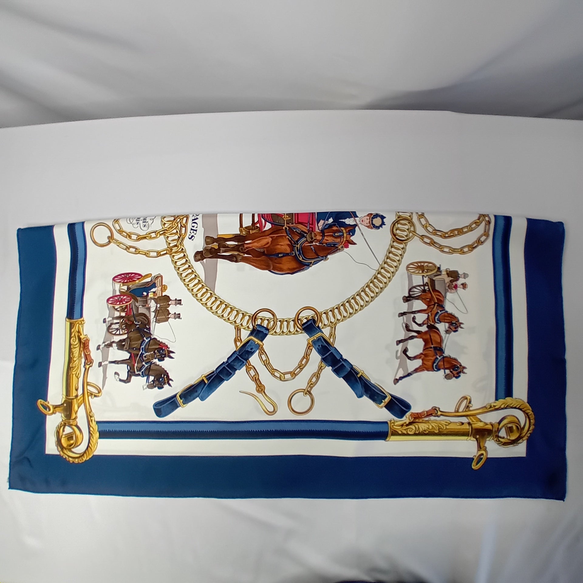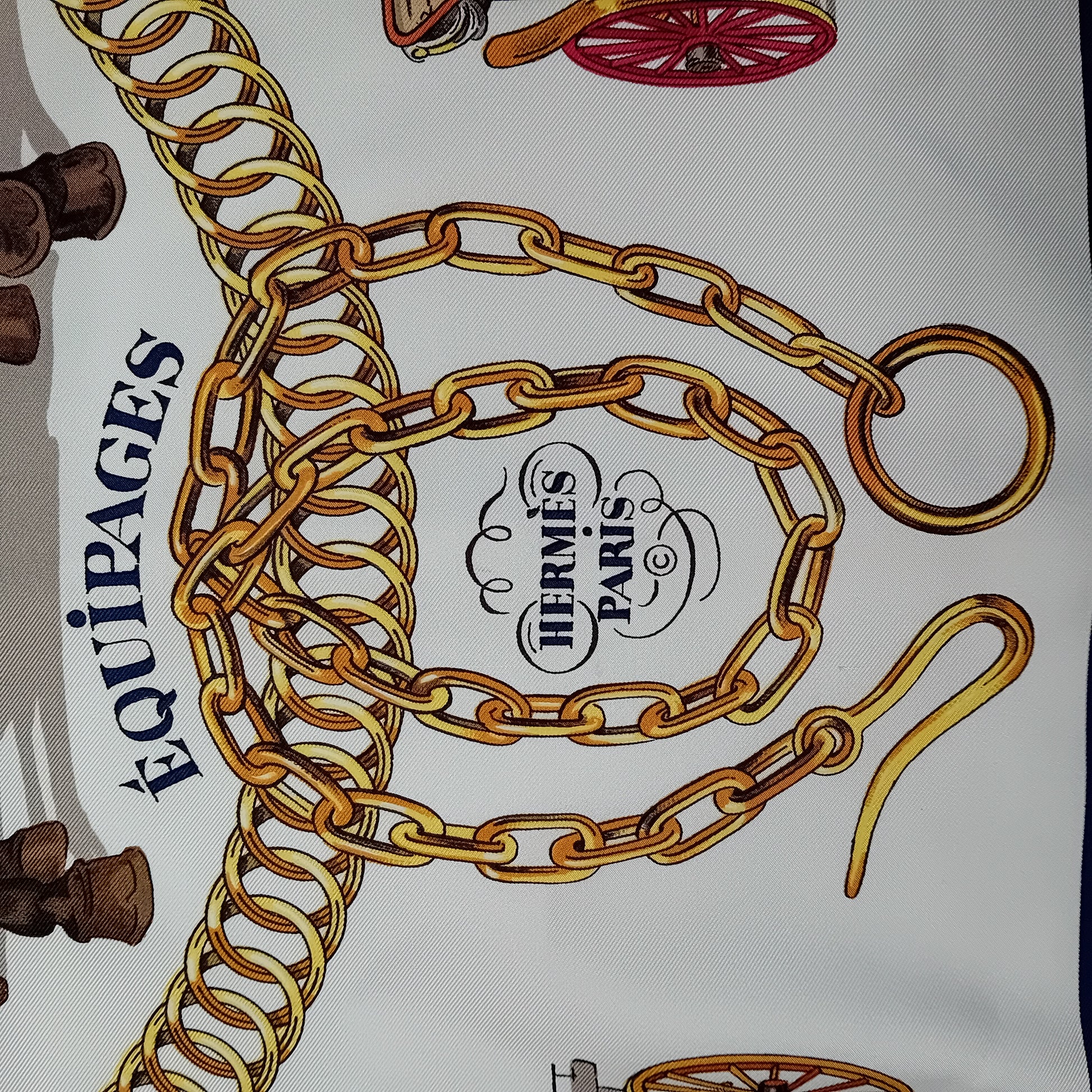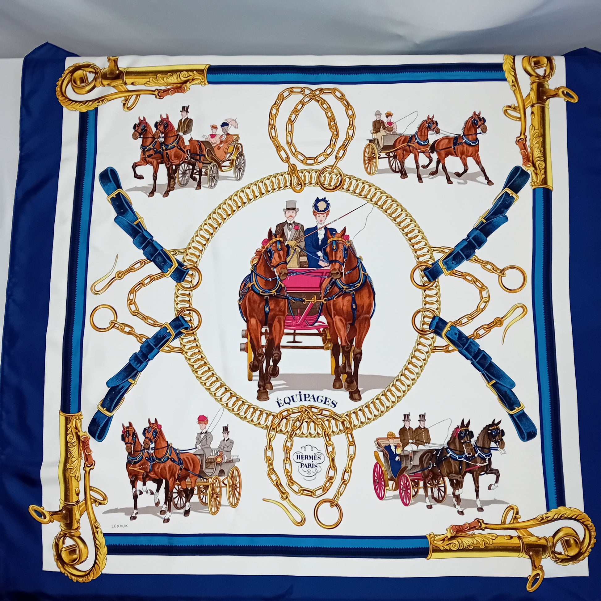 Carré HERMES, équipages, firmato Ledoux. Amato, presenta una macchia sul fondo e due fili tirati (difficilmente individuabili). Molto ben conservato.