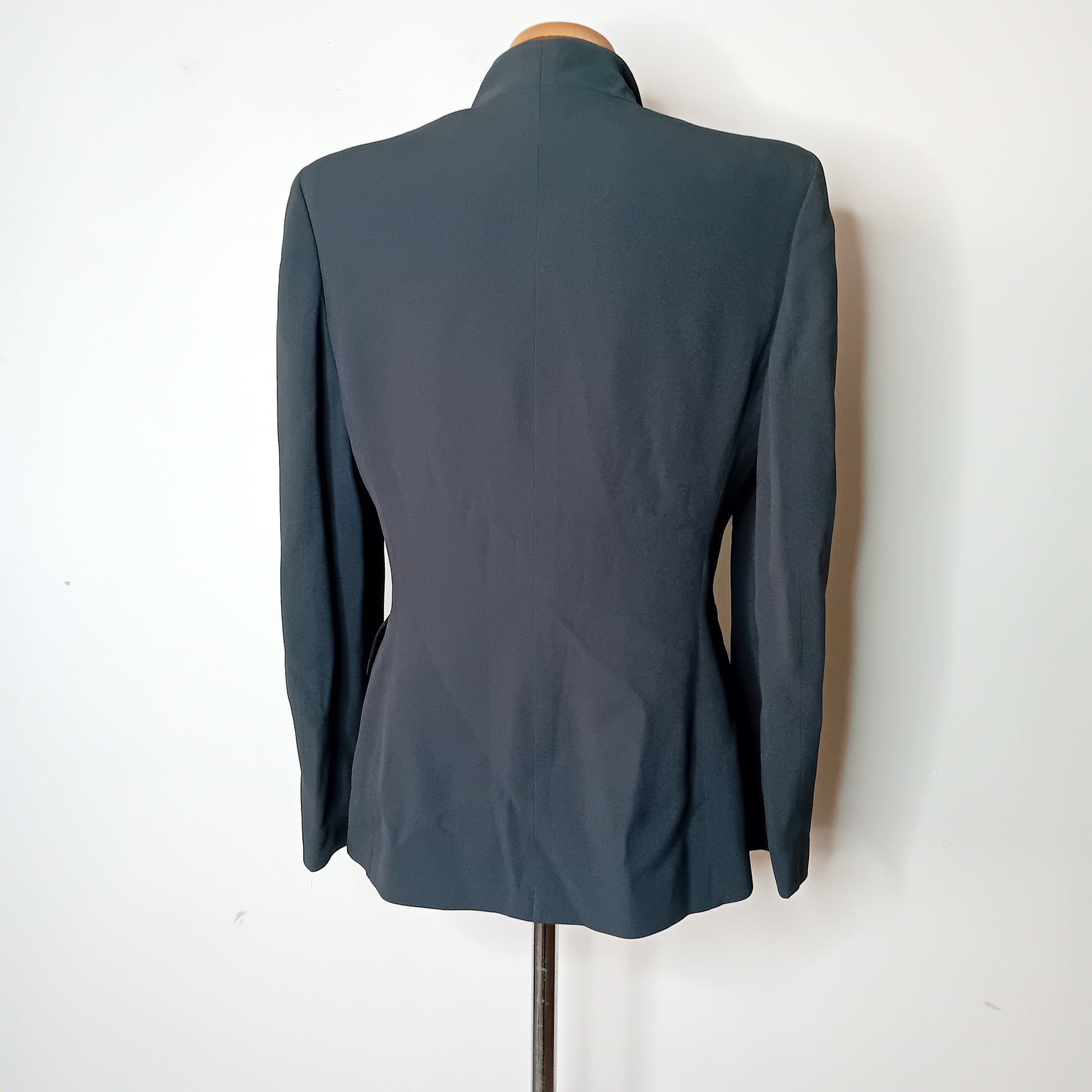 Blazer vintage firmato LE PASSE-PARTOUT, in cadis antracite, maniche lunghe, spalline rinforzate, riprese sul seno e due finte tasche. Amato, ottimamente conservato.