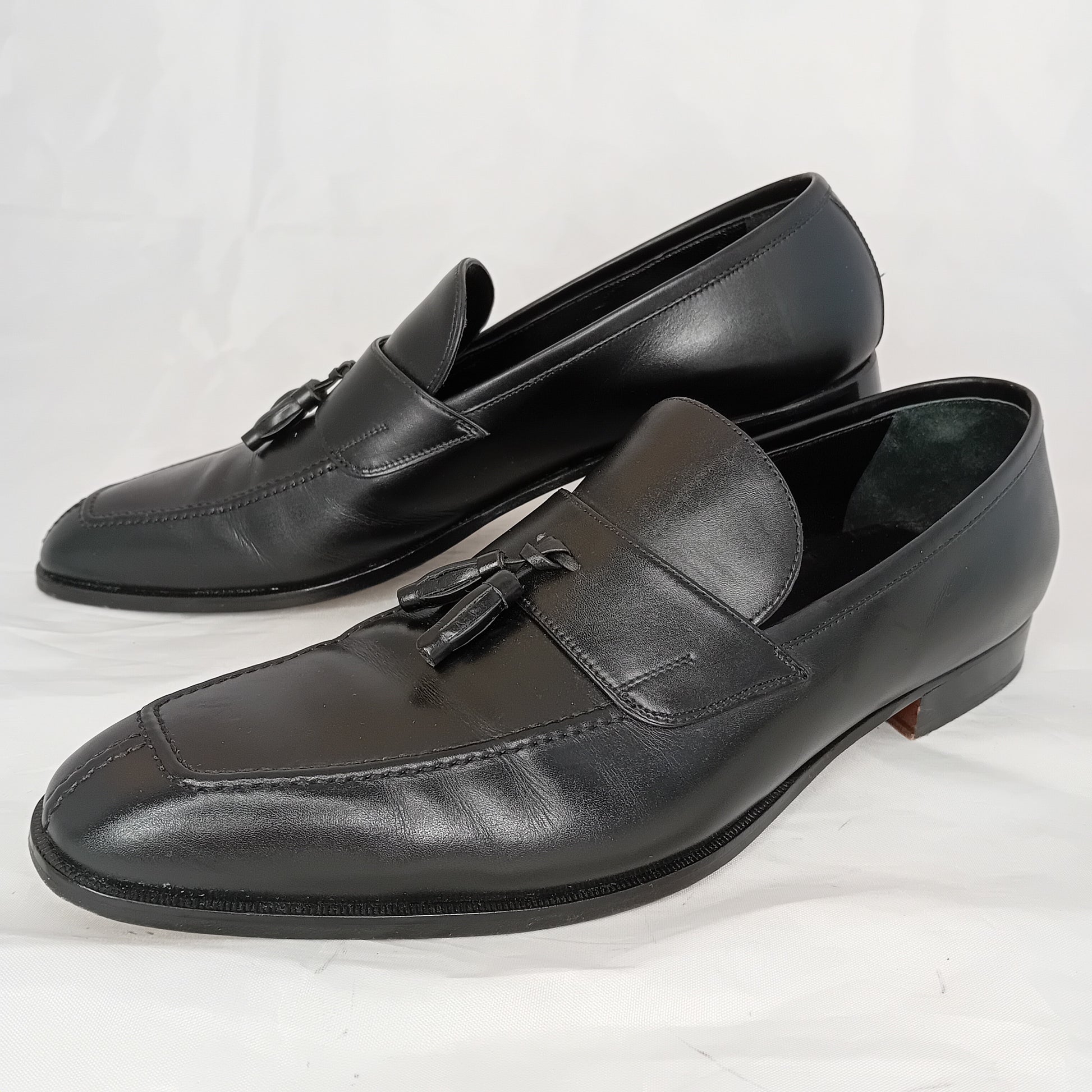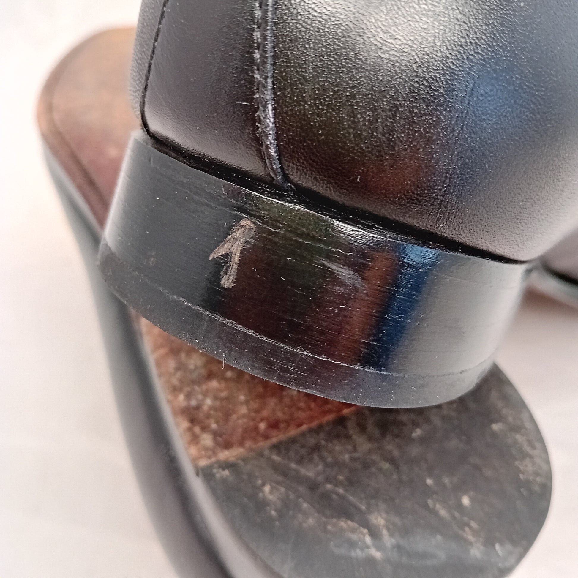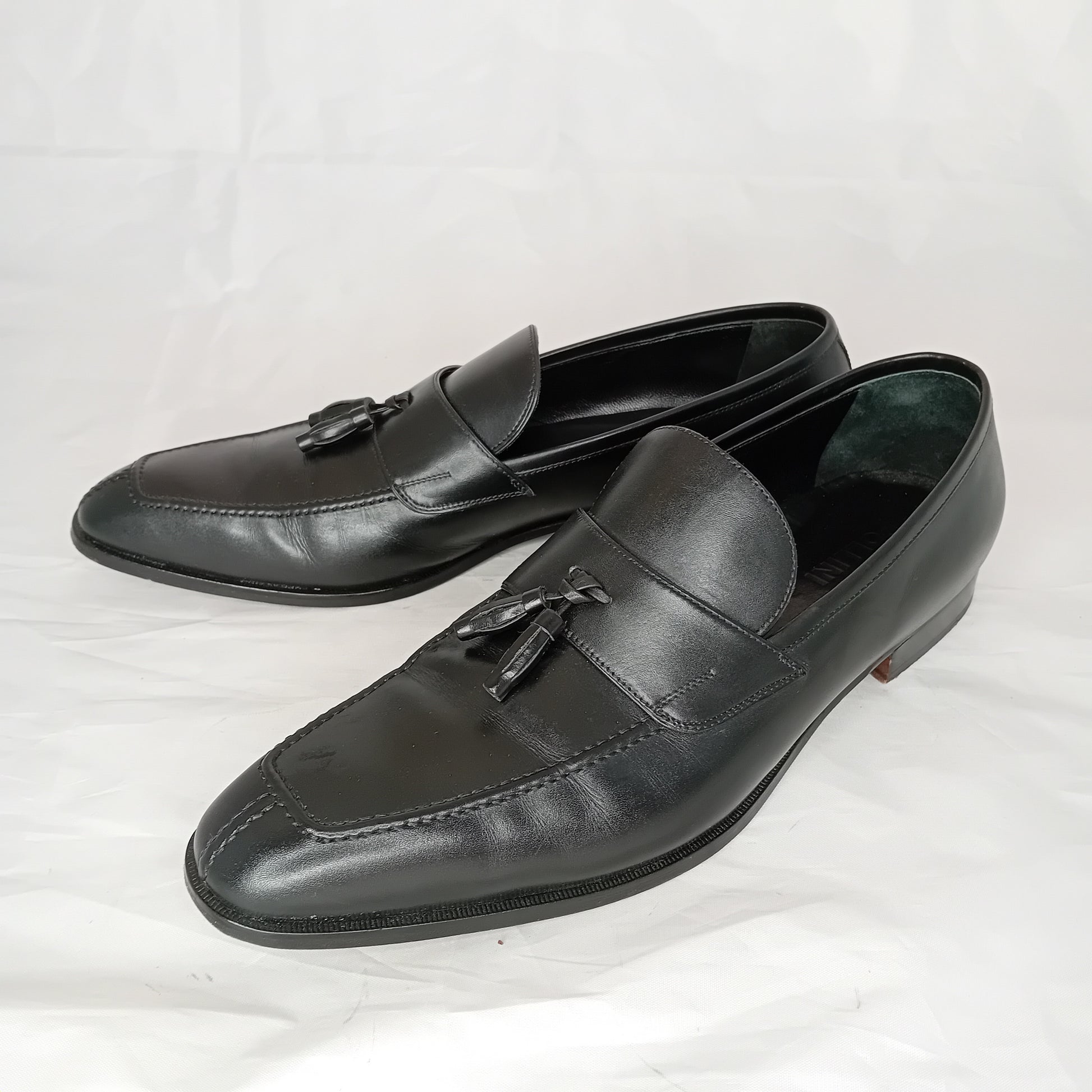 Loafers POLLINI in pelle nera liscia, a punta, con nappe. Scarsamente amate, presentano un segno lungo il tacco, ottimamente conservate.