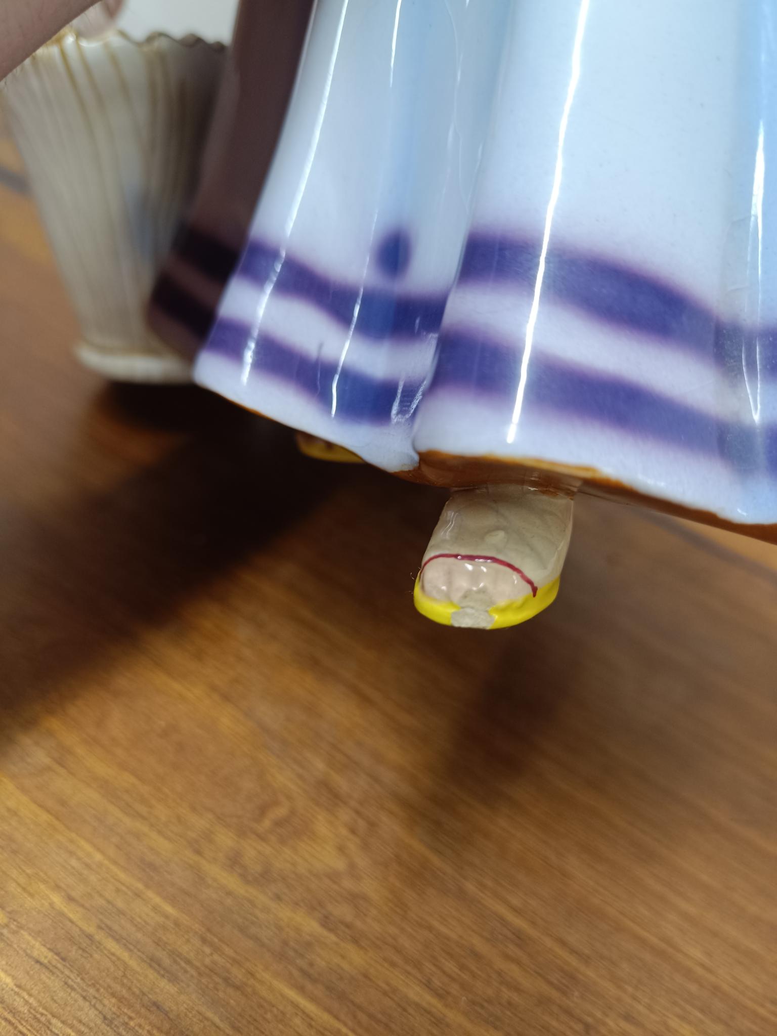 (Originale, firma dell'artista perfettamente leggibile. Stato di usura dell'oggetto compatibile con età e utilizzo. Lieve difetto sul piede visibile.)