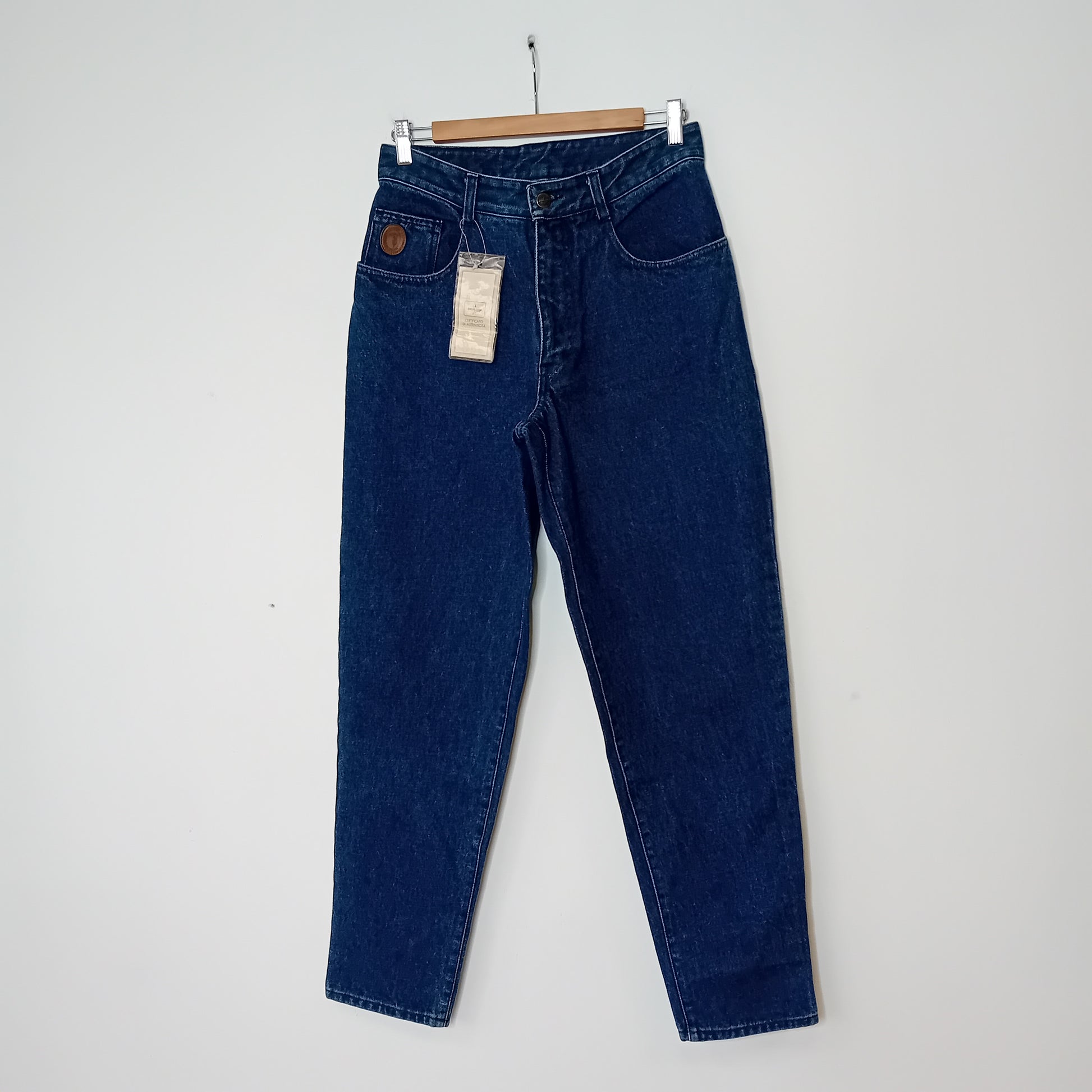 Jeans vintage TRUSSARDI JEANS, blu scuro, a vita alta, cinque tasche, gamba che scende dritta. Nuovi con etichetta, hanno un difetto di cucitura sul retro (come da foto).